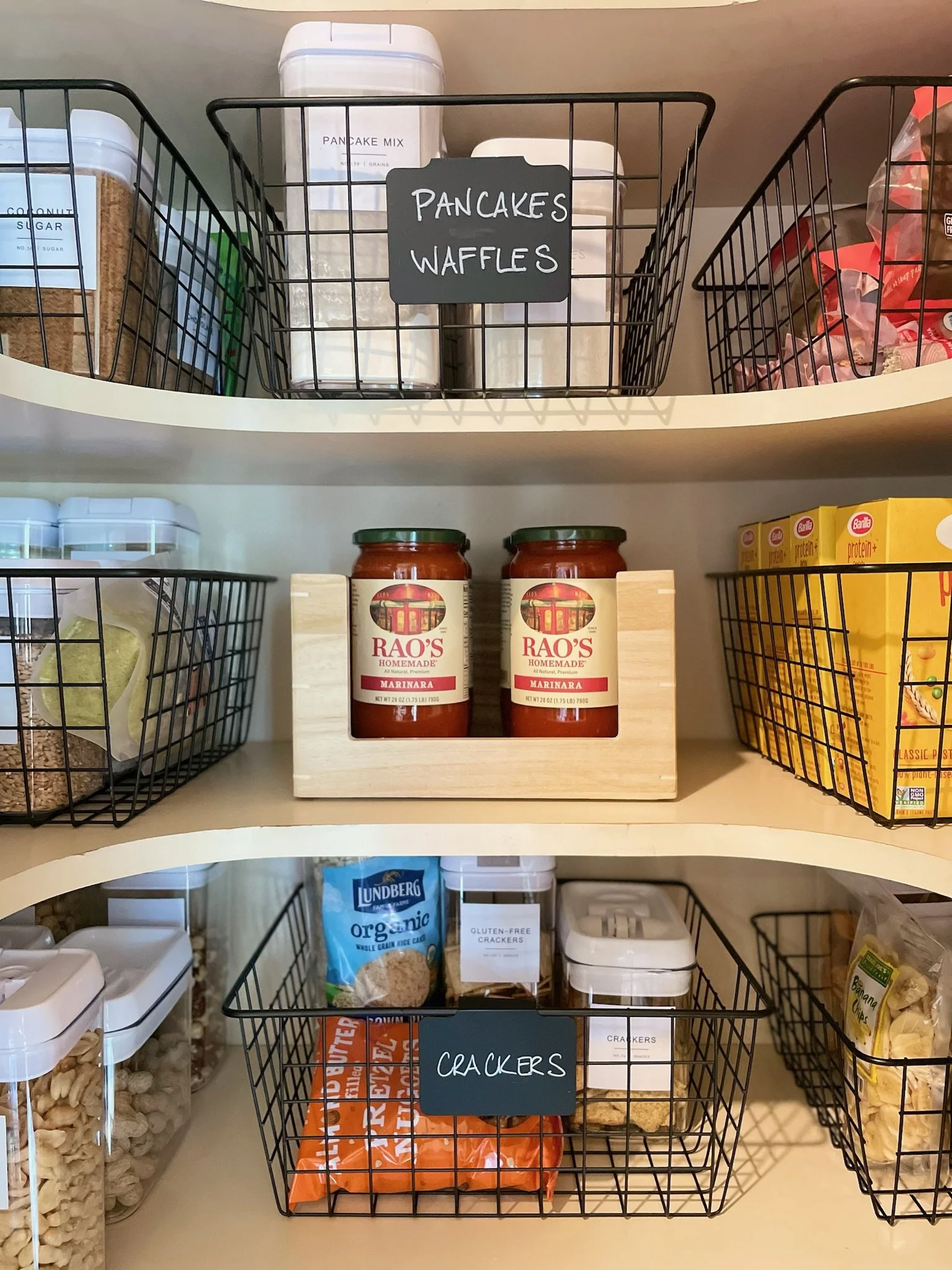 We love a “stadium” style solution for cans so you can see everything beautifully displayed